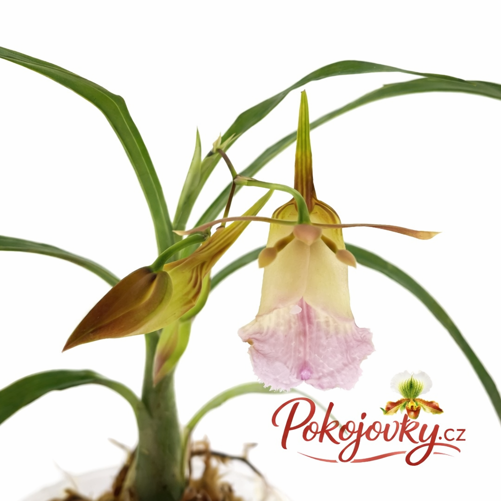 Květní stvol vyrůstá z vrcholu vyzrálé pseudobulby a může dosahovat délky 30–60 cm.